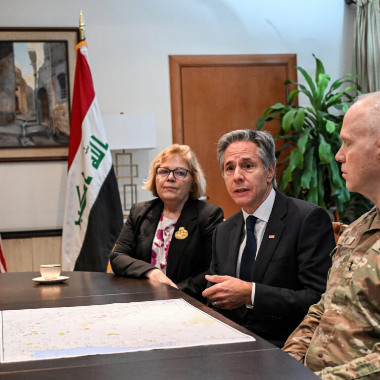 Ο Άντονι Μπλίνκεν έφτασε στην Βαγδάτη με ένα μεταγωγικό αεροσκάφος C-17, υπό την συνοδεία ελικοπτέρων και επιβεβαίωσε την δέσμευση των ΗΠΑ για την ασφάλεια του Ιράκ, σε μια χρονική συγκυρία που η Ουάσινγκτον θέλει να μειώσει περαιτέρω την επιρροή του Ιράν στην περιοχή.