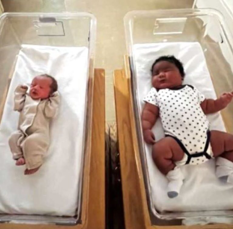 Το νοσοκομείο κοινοποίησε μια συγκινητική φωτογραφία στο Facebook που δείχνει το μωρό «γίγας» δίπλα στην Margot, ένα κοριτσάκι που γεννήθηκε την ίδια ημέρα με βάρος μόλις 2 κιλών.