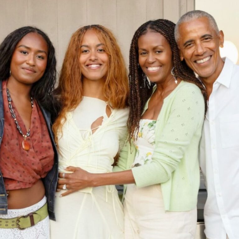 Στη φωτογραφία που ανέβηκε από κοινού στο Instagram την Πέμπτη (27.11.2025), ο Μπαράκ και η Μισέλ χαμογελούν δίπλα στις κόρες τους, Σάσα και Μάλια.