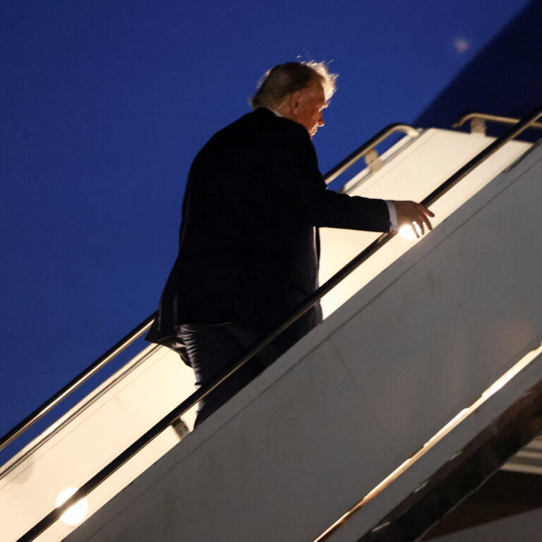 H στιγμή που ο Ντόναλντ Τραμπ επιβιβάζεται στο Air Force One.