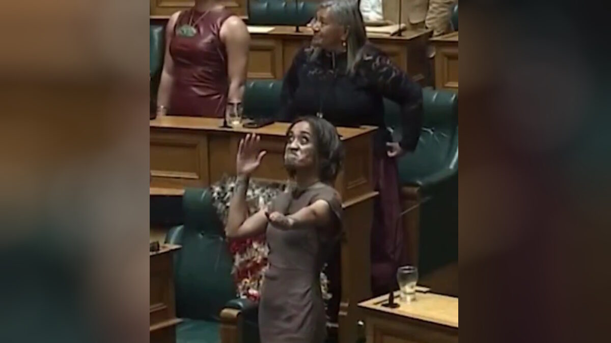 Σε βίντεο από το κοινοβούλιο της Νέας Ζηλανδίας, που έκανε τον γύρο του διαδικτύου, φαίνεται η βουλευτής του κόμματος των Μαορί, Oriini Kaipara να ολοκληρώνει την πρώτη ομιλία της στην αίθουσα της ολομέλειας και να δίνει το σήμα για να ξεκινήσει ο παραδοσιακός χορός μάκα.