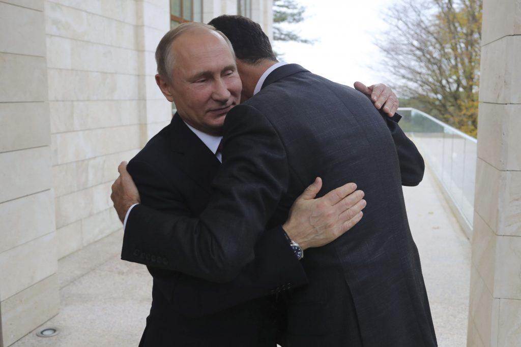 Άρα μάλλον δικαιολογείται η… χαρά του όταν τον επισκέφτηκε στη βίλα του στο Σότσι. Ο Άσαντ αγκάλιασε θερμά τον Πούτιν, όχι μόνο για να τον ευχαριστήσει για την πρόσκληση αλλά και για τη στήριξη στον πόλεμο στη Συρία.