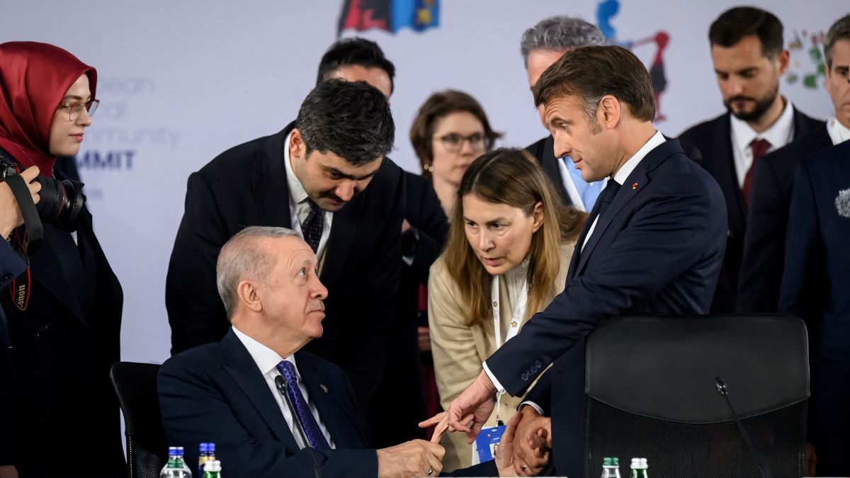 Στα αποδεικτικά στοιχεία (βίντεο) φαίνεται ο Τούρκος πρόεδρος Ρετζέπ Ταγίπ Ερντογάν να πιάνει τα δάχτυλα του Γάλλου ομολόγου του, Εμανουέλ Μακρόν κατά τη διάρκεια της συνόδου κορυφής της Ευρωπαϊκής Πολιτικής Κοινότητας (EPC) στην Αλβανία.
