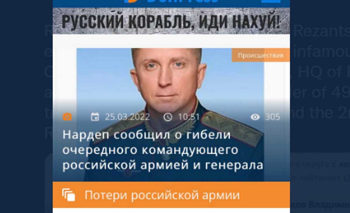 Ukrainian military confirm the elimination of LTG Yakov Rezantsev, Russia’s 49th CAA commander, in Chornobaivka near Kherson.