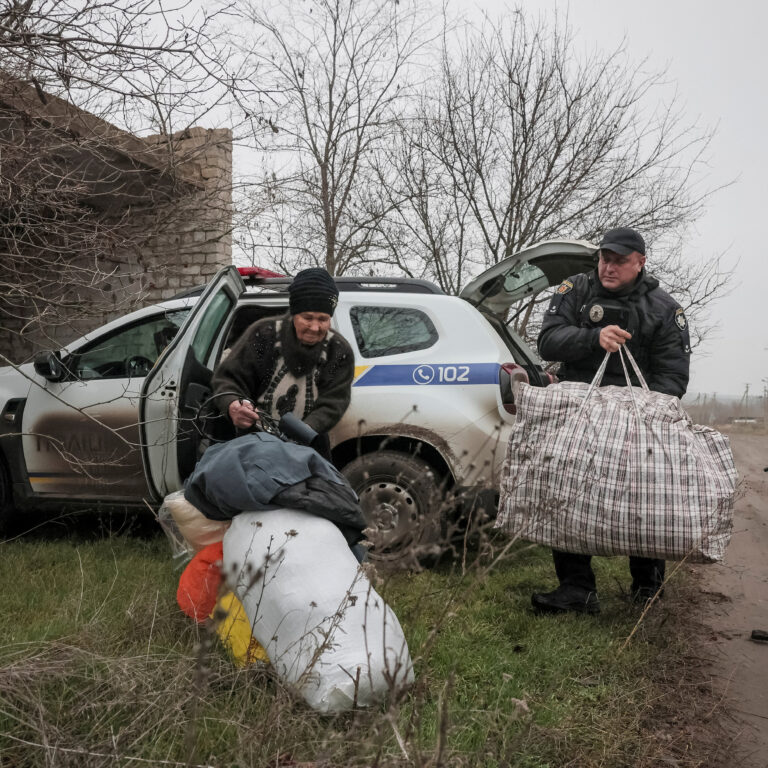 Καθισμένη στο πίσω μέρος ενός βαν εκκένωσης, με το μπαστούνι ανάμεσα στα γόνατά της, η 84χρονη Πολίνα Πλιούσκι αφήνει το χωριό της χωρίς να ξέρει αν θα ξαναπατήσει ποτέ εκεί. «Είσαι στο σπίτι σου, στην αυλή σου, και δεν τολμάς πια ούτε να βγεις έξω», λέει πριν φύγει από τη Χουλιαϊπόλε, μια κωμόπολη στο νοτιοανατολικό τμήμα της Ουκρανίας, μόλις δέκα χιλιόμετρα από τις μάχες με τη Ρωσία.