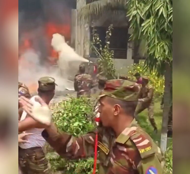 Horrifying visuals: Air Force Jet Crash in Dhaka – One Dead, Several Injured.