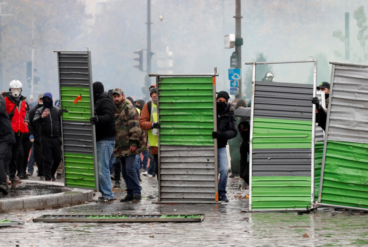 Τα τηλεοπτικά δίκτυα μετέδωσαν εικόνα από σπασμένες βιτρίνες καταστημάτων, πυρπολημένων οχημάτων και διαδηλωτές με καλυμμένα τα πρόσωπά τους να συγκρούονται με τις αστυνομικές δυνάμεις. Οι περισσότεροι από αυτούς τους διαδηλωτές δεν φορούσαν τα χαρακτηριστικά κίτρινα γιλέκα.