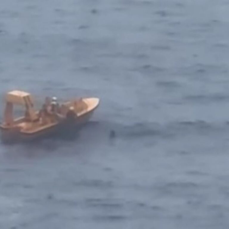 Μέσα σε λίγα λεπτά, τα μέλη του πληρώματος έσπευσαν προς βοήθεια κατεβάζοντας ένα σκάφος διάσωσης στη θάλασσα.