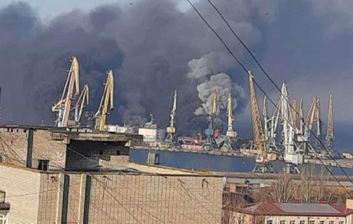 Το λιμάνι του Μπερντιάνσκ, στην Αζοφική Θάλασσα, χρησιμοποιείται από τους Ρώσους για ανεφοδιασμό. Η Μπερντιάνσκ είναι μια από τις λίγες πόλεις που μπόρεσαν να καταλάβουν οι Ρώσοι την 28η ημέρα της επίθεσής τους.