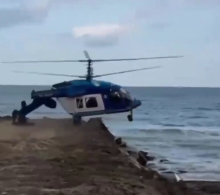 Το ελικόπτερο, τύπου Ka-226, διαλύθηκε στην προσπάθειά του να προσγειωθεί στη Ρωσία. Βίντεο στα social media δείχνουν το εναέριο μέσο να επιχειρεί προσγείωση σε παραλία, όταν η ουρά του χτυπά στο έδαφος. Από το χτύπημα αποκολλάται ο ουραίος στροφέας, κρίσιμος για τη σταθερότητα της πτήσης. Ο πιλότος προσπαθεί να ξαναπάρει ύψος, όμως το ελικόπτερο αρχίζει να περιστρέφεται ανεξέλεγκτα και συντρίβεται λίγα δευτερόλεπτα αργότερα.