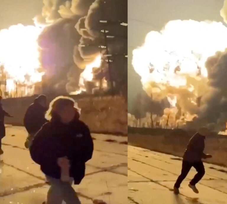Όμως, οι κάτοικοι του Ριαζάν κάνουν λόγο για επιδρομή drones «καμικάζι» στις δεξαμενές του διυλιστηρίου και εκρήξεις πριν ξεπηδήσουν οι πύρινες γλώσσες.