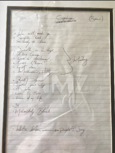 Η λίστα των τραγουδιών γραμμένη από τον Freddie Mercury πριν από συναυλία των Queen στην Κοπεγχάγη, το 1978 πωλείται σε δημοπρασία. Ενδέχεται να είναι η μοναδική λίστα που έγραψε ο αξέχαστος αρχηγός του ροκ συγκροτήματος, σύμφωνα με το TMZ.