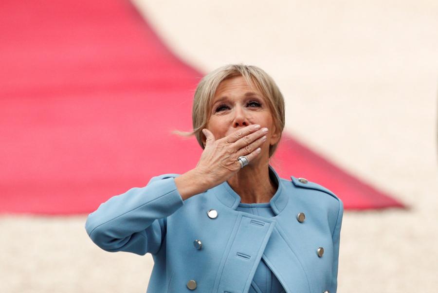 Η Μπριζίτ Μακρόν, έφθασε στις 09:50 στο προεδρικό μέγαρο των Ηλυσίων, δέκα λεπτά πριν από τον σύζυγό της, για να παρευρεθεί στη μεταβίβαση της εξουσίας από τον Φρανσουά Ολάντ. Την Μπριζίτ υποδέχθηκε ο επικεφαλής του πρωτοκόλου. Στη συνέχεια η μέλλουσα πρώτη κυρία πέρασε σε ένα σαλόνι του προεδρικού μεγάρου.