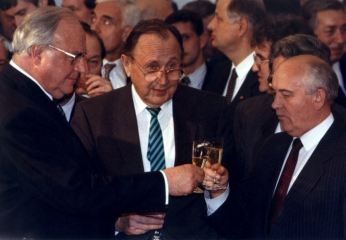 Αναγνωρίζοντας από πολύ νωρίς την ευκαιρία που αποτελούσε η περεστρόικα στην ΕΣΣΔ, ο Γκένσερ είχε ανακοινώσει στις 30 Σεπτεμβρίου 1989 στην Πράγα, μπροστά σε ένα πλήθος που ζητωκραύγαζε, ότι οι τσεχικές αρχές θα άφηναν εκατοντάδες πρόσφυγες που είχαν διαφύγει από την κομμουνιστική Γερμανική Λαοκρατική Δημοκρατία να μεταβούν στη Δυτική Γερμανία, σηματοδοτώντας έτσι ένα πρώτο ρήγμα στο σιδηρούν παραπέτασμα.