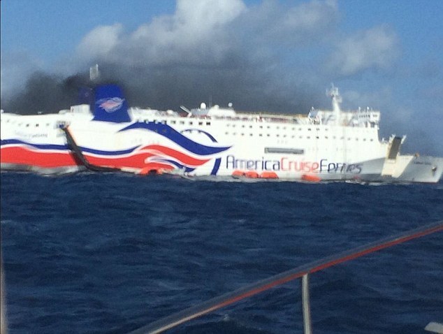 Σύμφωνα με το Primahora.com, η φωτιά που ξέσπασε ενώ το πλοίο απομακρυνόταν από το λιμάνι San Juan μπορεί να οφείλεται σε μηχανική βλάβη.
