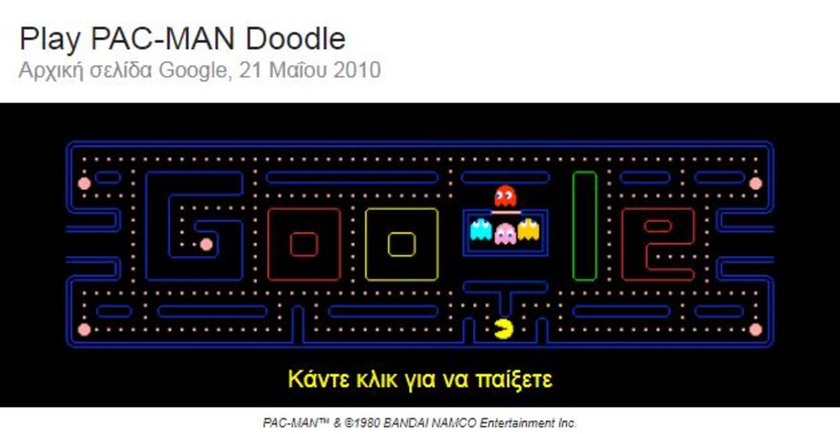 Birthday pinata: Με ένα κλικ, ο επισκέπτης σήμερα της Google – ή καλύτερα να πούμε ο… παίκτης – πρέπει να χτυπήσει πετυχημένα την pinata. Ένα κλασικό παιχνίδι χωρίς ιδιαίτερη δυσκολία, ιδανικό για μικρούς χρήστες του διαδικτύου.