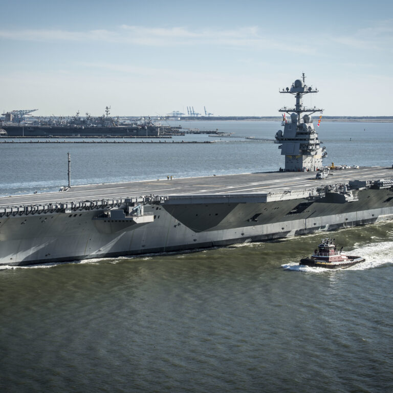 Το αεροπλανοφόρο Gerald R. Ford, το πιο προηγμένο του αμερικανικού πολεμικού ναυτικού, μεταφέρει μεταξύ άλλων τέσσερις μοίρες μαχητικών αεροσκαφών και συνοδεύεται από τρία πυραυλοφόρα αντιτορπιλικά