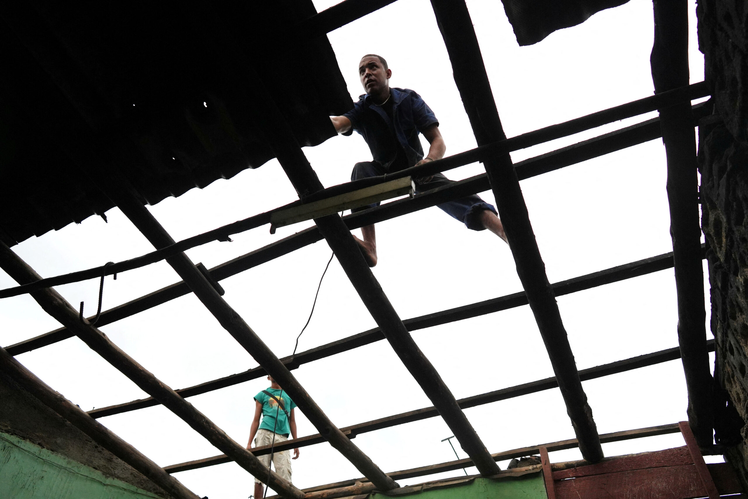 Αφαιρούν τις λαμαρίνες από τις στέγες για να μην τις παρασύρει ο τυφώνας / REUTERS/Alexandre Meneghini