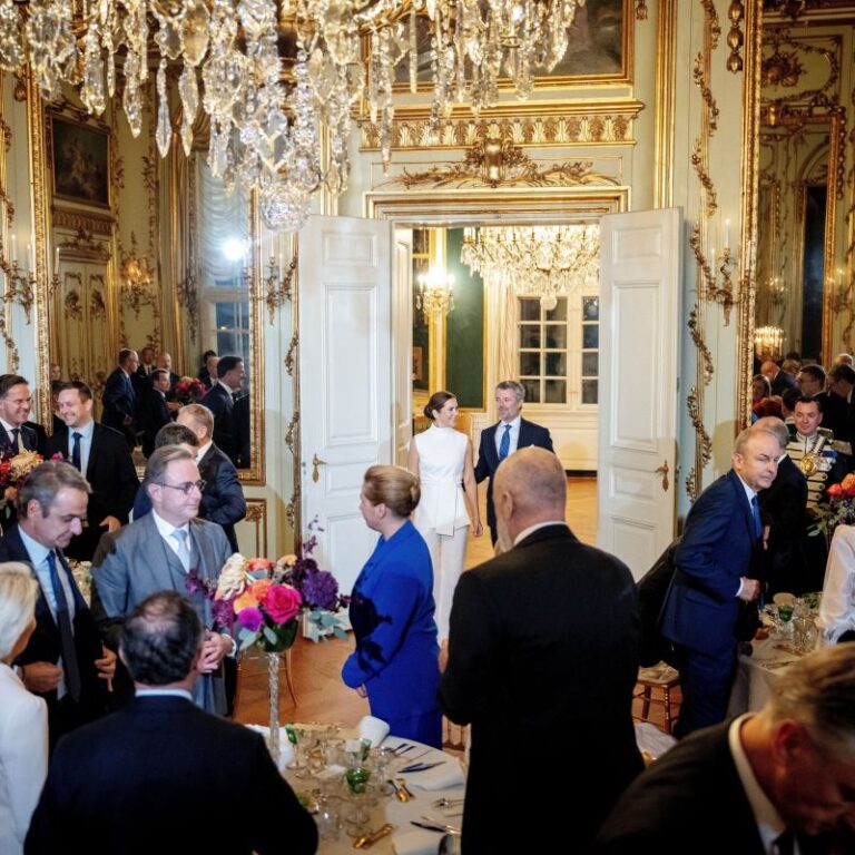 Ένα εντυπωσιακό δείπνο παρέθεσαν ο βασιλιάς Φρειδερίκος και η βασίλισσα Μαίρη της Δανίας, στο παλάτι Αμαλιένμποργκ της Κοπεγχάγης, προς τιμήν 50 ηγετών κρατών και κυβερνήσεων της ΕΕ και της Ευρωπαϊκής Πολιτικής Κοινότητας.