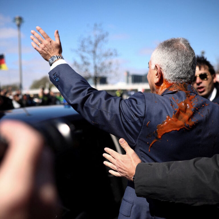 Ωστόσο, τον περίμενε μια… έκπληξη καθώς όταν έβγαινε από το κτίριο όπου έδωσε την συνέντευξη Τύπου, ένας άνδρας του έριξε ντοματοχυμό, με τις αρχές να συλλαμβάνουν αμέσως τον δράστη.