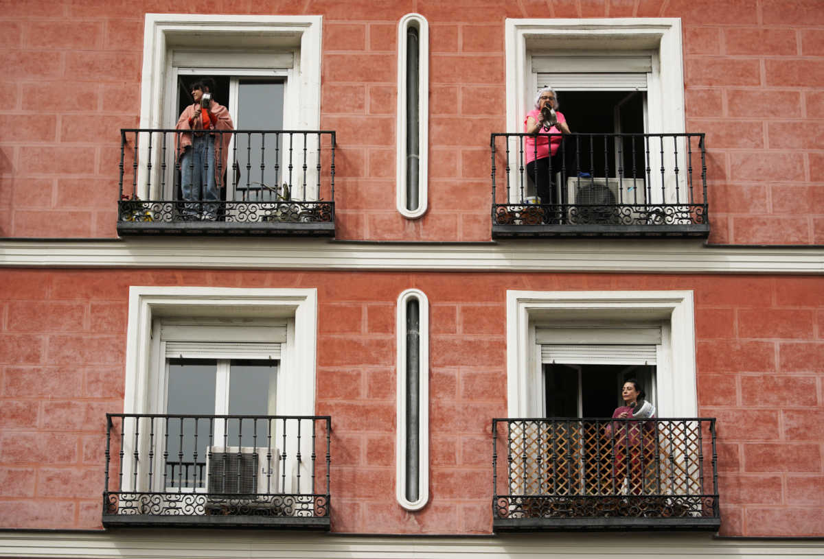 Οι Ισπανοί, που βρίσκονται από το Σάββατο υπό αυστηρό περιορισμό στα σπίτια τους, ήταν οι πρώτοι που βγήκαν στα μπαλκόνια τους για να χειροκροτήσουν το ιατρικό και νοσηλευτικό προσωπικό των νοσοκομείων τους που δίνει την μάχη του κορονοϊού.