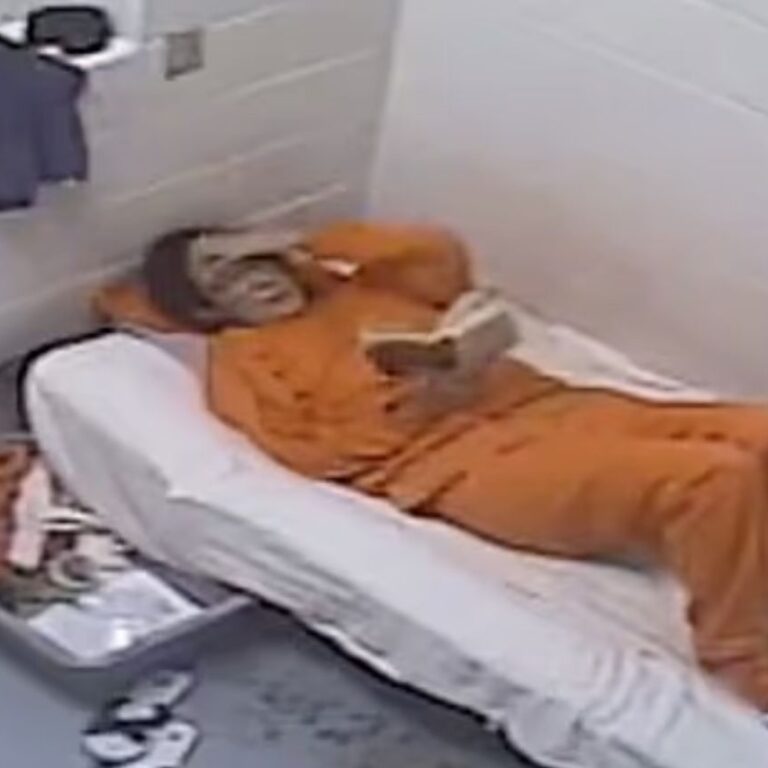 Στο βίντεο εμφανίζεται να φορά πορτοκαλί στολή κρατουμένου, να πίνει νερό, να τακτοποιεί το κρεβάτι της και στη συνέχεια ξαπλώνει, και να διαβάζει ένα βιβλίο. Δίπλα της, στο πάτωμα, φαίνεται ένα μικρό κιβώτιο με προσωπικά αντικείμενα και πιθανότατα δεύτερη αλλαξιά ρούχα.