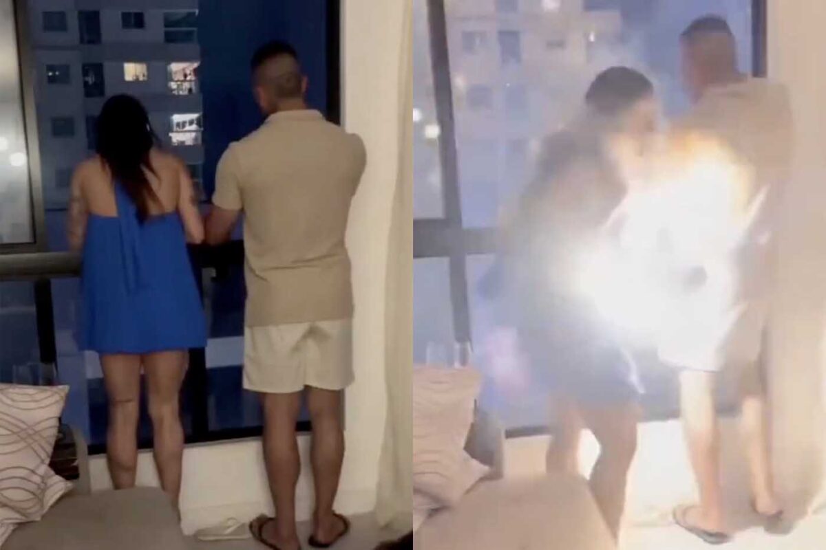 Κι ενώ το ζευγάρι φαίνεται να κοιτάξει έξω από το παράθυρο, ένα πυροτέχνημα σκάει στο στήθος της 27χρονης, με την ίδια να ουρλιάζει από τον πόνο και τον τρόμο.