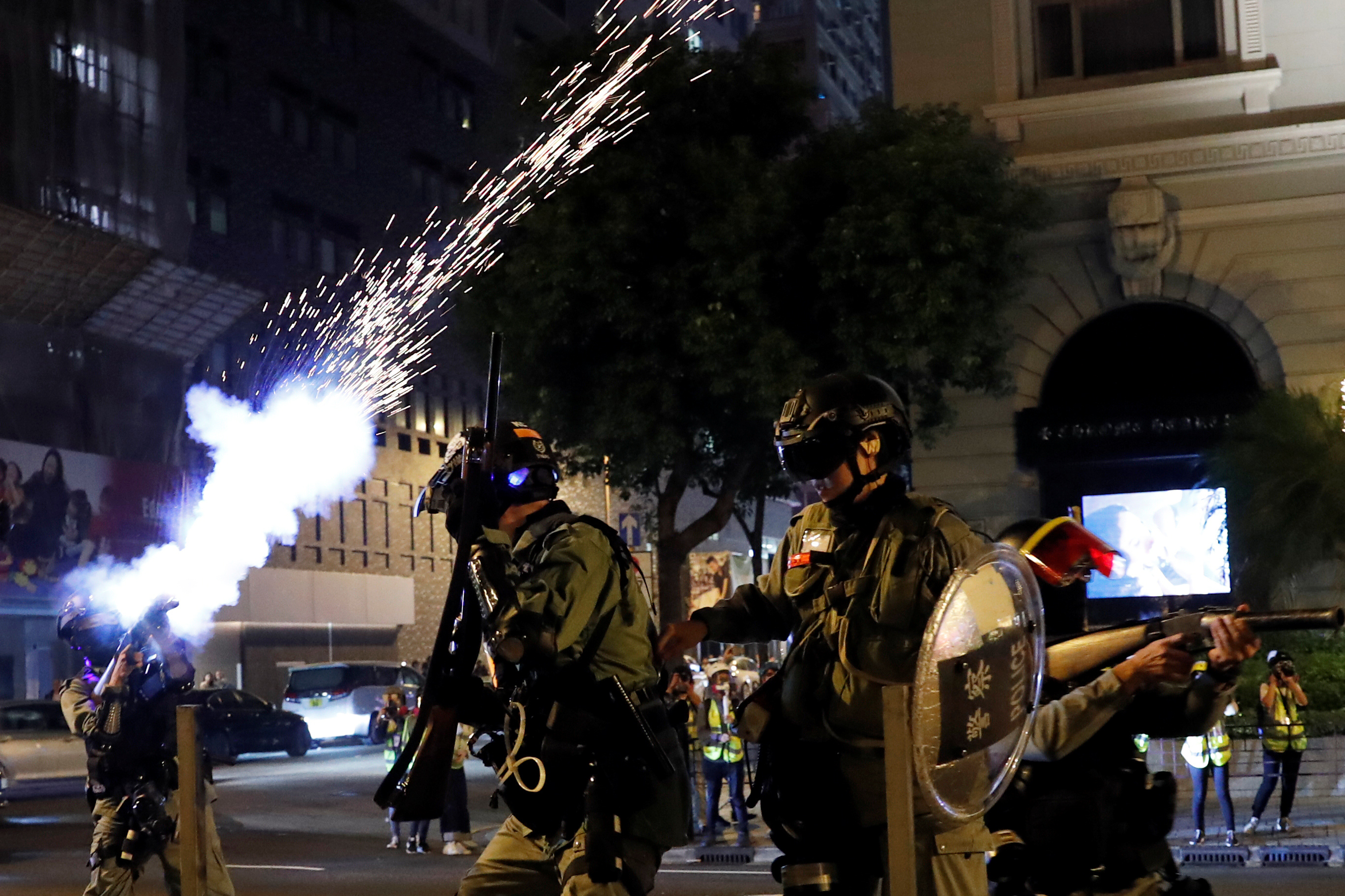 Η αστυνομία έκανε χρήση δακρυγόνων προκειμένου να διαλύσει τους διαδηλωτές που είχαν καταλάβει κύριους δρόμους έξω από εμπορικά κέντρα και κοντινά πολυτελή ξενοδοχεία, ανάμεσα στα οποία και το Peninsula, στην Τσιμ Σα Τσούι, στην τουριστική συνοικία Καουλούν.