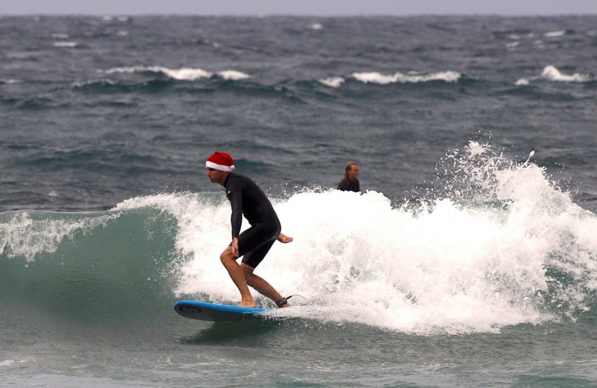 Στην Αυστραλία, ο Δεκέμβριος είναι ένας από τους θερμότερες μήνες του έτους σε όλη τη χώρα, με τα Χριστούγεννα να γιορτάζονται κατά παράδοση με υπαίθρια πάρτι και εκδρομή στην παραλία, όπου οι ναυαγοσώστες περιπολούν καθώς εκατοντάδες κολυμβητές βουτούν για μια ανάσα δροσιάς.