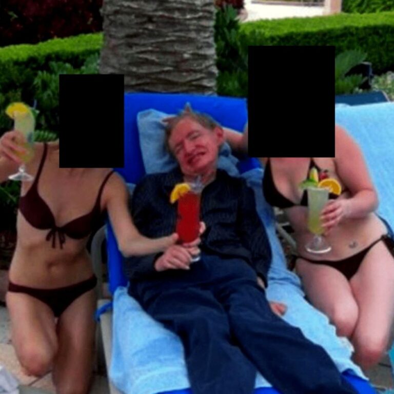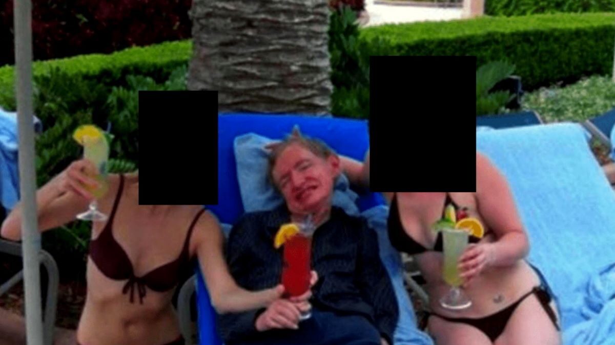 Πρόκειται για μια φωτογραφία από την νέα παρτίδα των εγγράφων της υπόθεσης του Τζέφρι Επστάιν που απεικονίζει τον φυσικό Στίβεν Χόκινγκ να χαμογελά καθισμένος σε μια ξαπλώστρα και να περιστοιχίζεται από δύο γυναίκες με μαγιό που κρατούν στα χέρια τους κοκτέιλ. Η φωτογραφία πάντως είχε κυκλοφορήσει και στο παρελθόν.