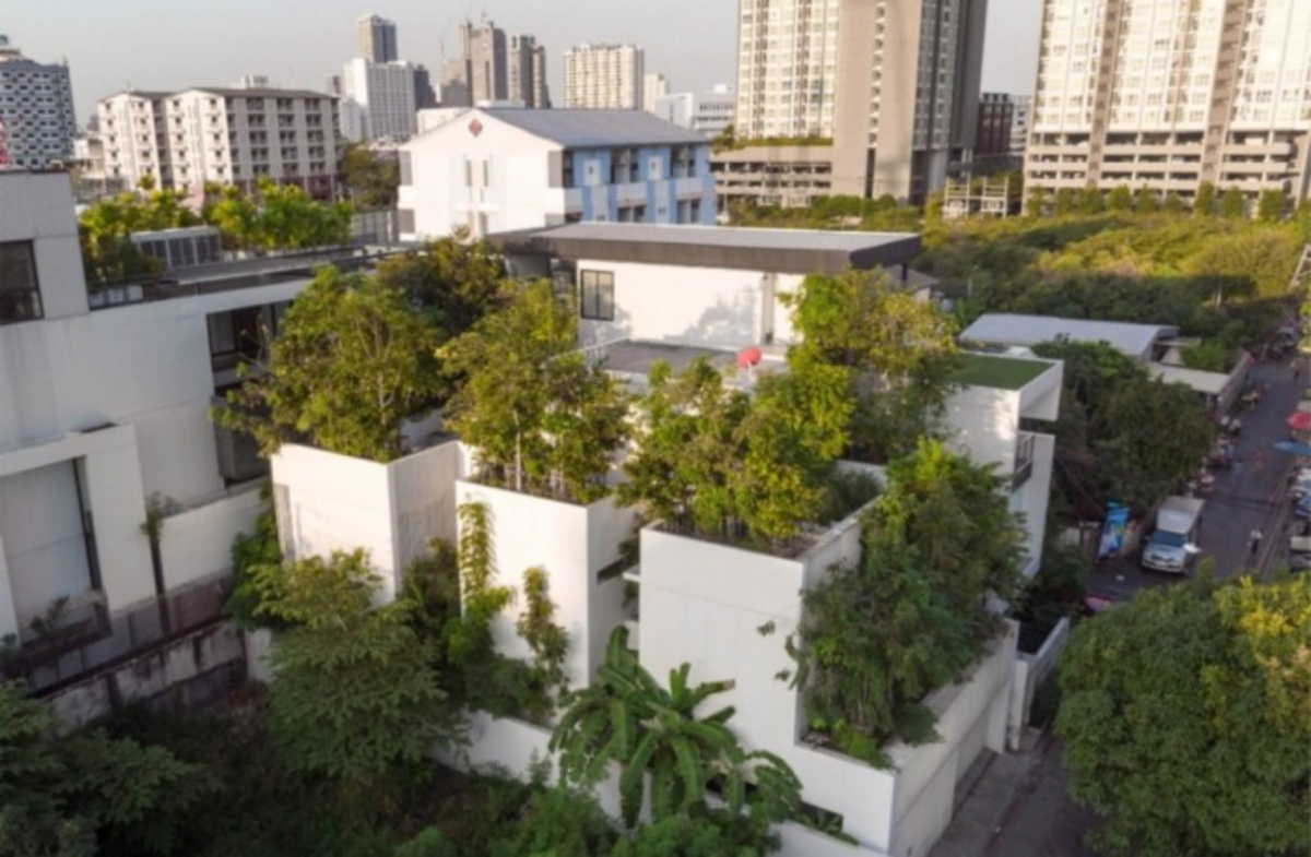 Σε ένα οικόπεδο μόλις 300 τετραγωνικών μέτρων, συμπεριλαμβανομένης της οροφής, το σπίτι στην πρωτεύουσα της Ταϊλάνδης, τη Μπανγκόκ, μπορεί να φιλοξενήσει επτά άτομα και 120 δέντρα.