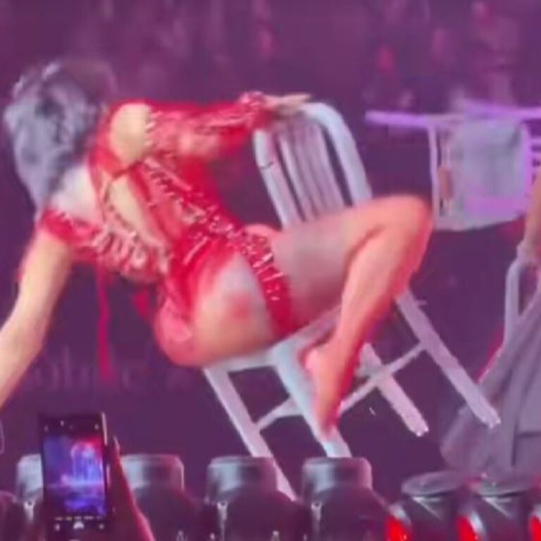 Η 33χρονη Αμερικανίδα ράπερ Cardi B τράβηξε τα βλέμματα δείχνοντας τις καμπύλες της ενώ καθόταν πάνω στην πλάτη μιας καρέκλας σε συναυλία της στο Λας Βέγκας. Όμως, όταν προσπάθησε να γείρει σαγηνευτικά προς τα πίσω μέχρι το πάτωμα, κρατώντας το χέρι της, έπεσε επειδή η καρέκλα γλίστρησε από κάτω της.