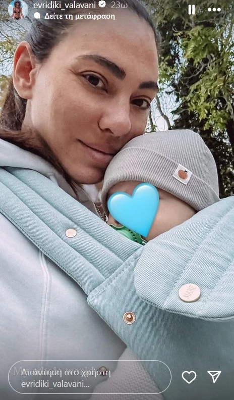 Μία ημέρα νωρίτερα, την Πέμπτη 23 Οκτωβρίου, η παρουσιάστρια είχε ανεβάσει ένα ακόμα story, στο οποίο ποζάρει με τον γιο της, έχοντας καλύψει το πρόσωπό του με μια μπλε καρδιά. Πάνω στη φωτογραφία έγραψε χαρακτηριστικά: «Όλος μου ο κόσμος».