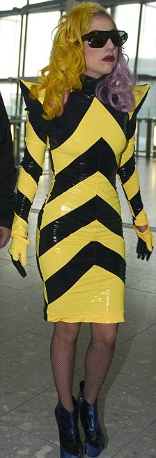 … αεροδρόμιο Heathrow του Λονδίνου, φτάνοντας από το Los Angeles! Με ένα ριγέ μαύρο κίτρινο φόρεμα, που δεν διέφερε και πολύ από τις πινακίδες του δρόμου, η Lady Gaga πόζαρε στον φακό και φυσικά συνάντησε θαυμαστές της μοιράζοντας τους αυτόγραφα!