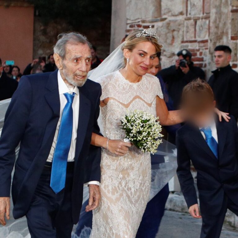 Στις 18:05 την Παρασκευή (07.02.2025)- ο γάμος ήταν προγραμματισμένος στις 18:00- κατέφτασε η Χρυσή Βαρδινογιάννη στην εκκλησία έχοντας στπο πλευρό της τον πατέρα της, Γιώργο Βαρδινογιάννη αλλά και τον μικρό γιο της, Γιώργο, ο οποίος είναι παράνυφος στον γάμο.