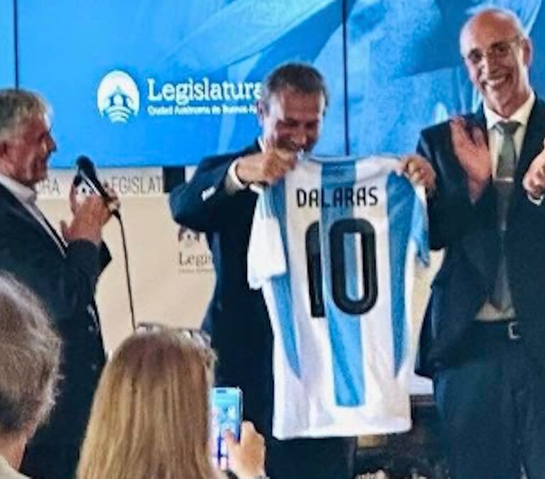 Σύμφωνα με ανακοίνωση της Ελληνικής Κοινότητας Μπουένος Άιρες (Asosiacion Colectividad Helenica de Buenos Aires), ο Γιώργος Νταλάρας βραβεύτηκε στο δημαρχείο με τον τίτλο του «διακεκριμένου πολίτη», όπου του δόθηκε ως δώρο μία φανέλα της «αλμπισελέστε» με το νούμερο 10 και το επώνυμό του στην πλάτη.