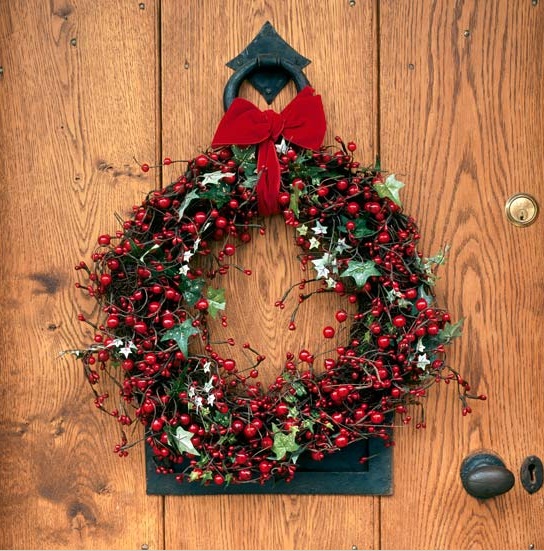 Τι καλύτερο από το να βάλουμε τους καλεσμένους μας σε διάθεση Χριστουγέννων από την είσοδο του σπιτιού μας; Ένα στεφάνι που μπορούμε να φτιάξουμε εύκολα με γκι και κόκκινη βελούδινη κορδέλα, είναι ό,τι πρέπει!