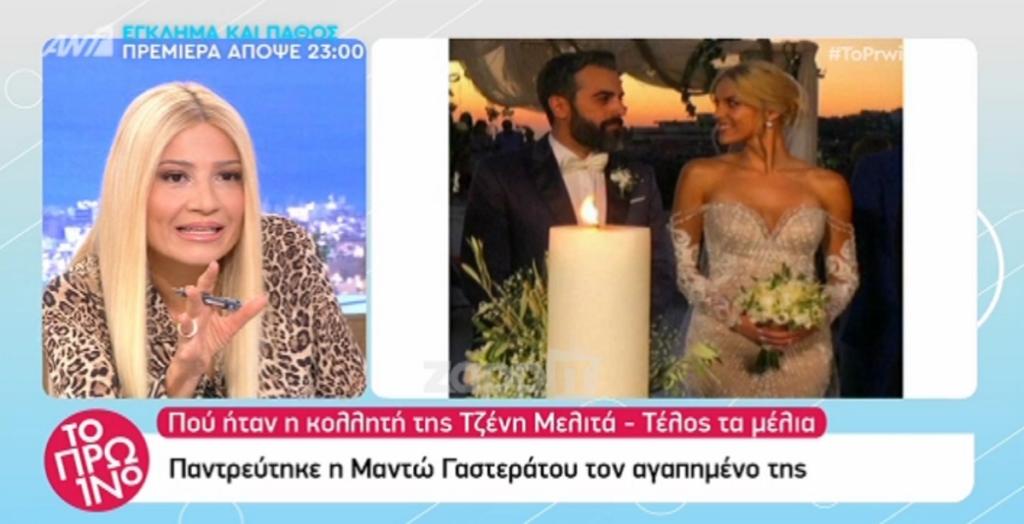 Η Μαντώ Γαστεράτου και ο αγαπημένος της Νίκος ενώθηκαν με ιερά δεσμά του γάμου και όσοι βρέθηκαν στο πλάι τους πέρασαν μια υπέροχη βραδιά. Όσοι βρέθηκαν… Γιατί η φίλη και κολλητή της, τουλάχιστον όπως είχαμε δει στην τηλεόραση τα προηγούμενα χρόνια, Τζένη Μελιτά, έλαμψε δια της απουσίας της. “Εφόσον δεν την κάλεσε είναι μαλωμένες…