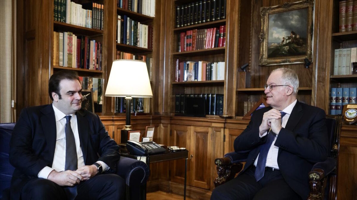 Στη συνάντηση με τον Κωνσταντίνο Τασούλα ο Κυριάκος Πιερρακάκης μίλησε για πάταξη της φοροδιαφυγής, προσέλκυση ξένων επενδύσεων και αξιοποίηση της δημόσιας περιουσίας, τονίζοντας ότι ζητούμενο είναι «να φτάσει σε κάθε σπίτι ουσιαστικά η ανάπτυξη» και να στηριχθεί το διαθέσιμο εισόδημα των πολιτών. Όπως ανέφερε, με βάση τα στοιχεία του Προϋπολογισμού η πρόβλεψη για το 2026 τοποθετεί τον ρυθμό ανάπτυξης στο 2,4%.