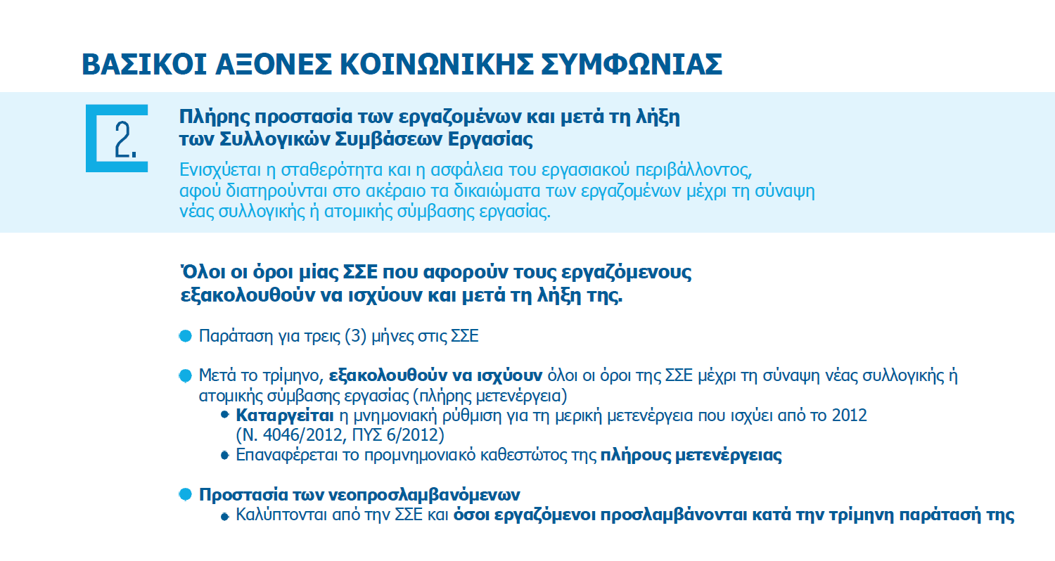 Ο δεύτερος άξονας αφορά στην πλήρη προστασία των εργαζομένων μετά τη λήξη των Συλλογικών Συμβάσεων Εργασίας.
