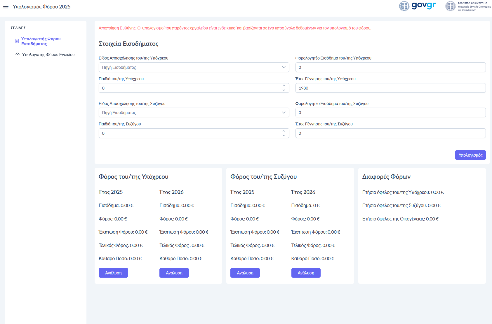 1. Υπολογιστής Φόρου Εισοδήματος