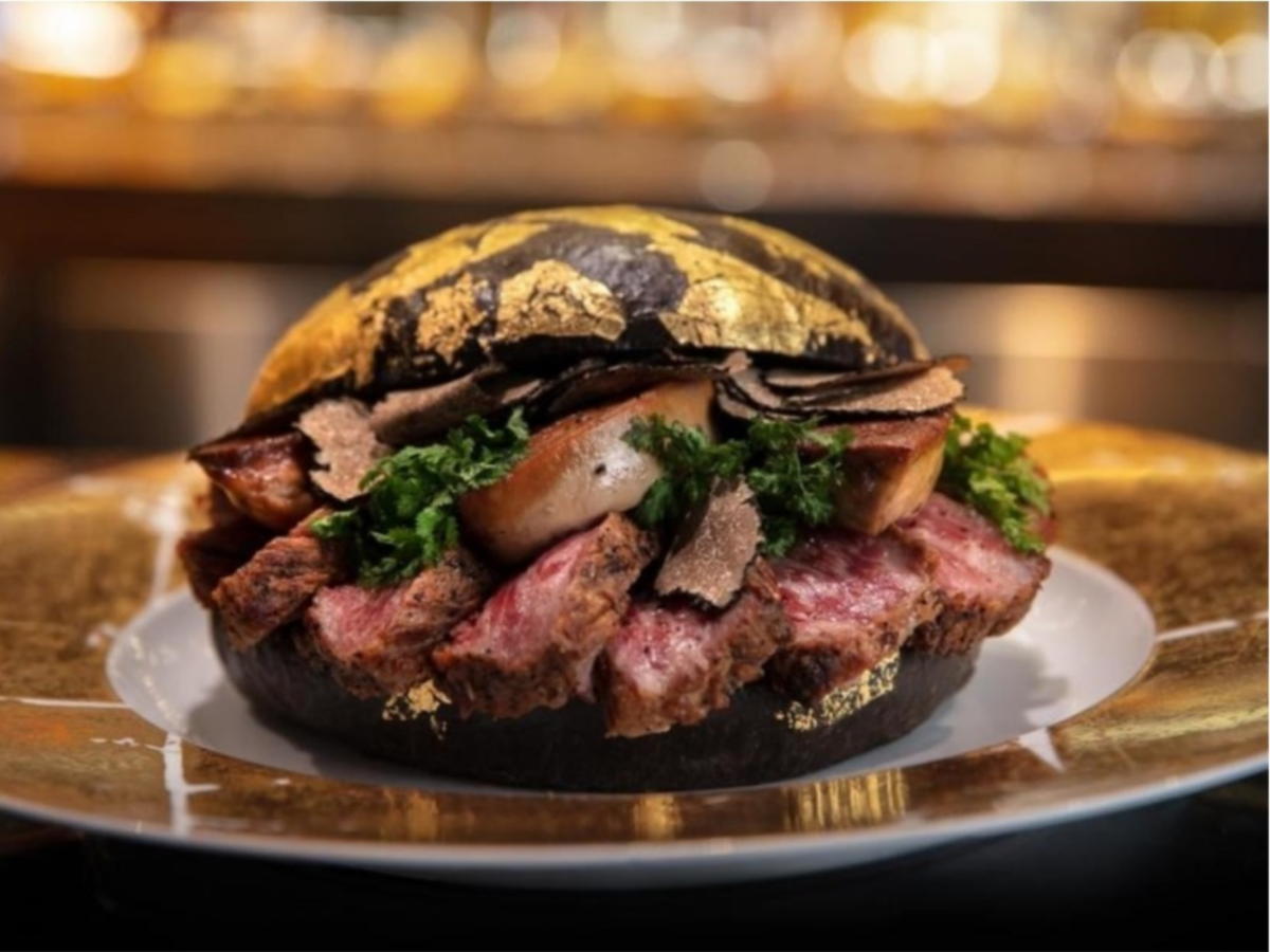 Πρόκειται για ένα μπέργκερ που σερβίρεται στο H Bar στο Χιούστον του Τέξας και αξία του ανέρχεται σε 1.600 δολάρια! Το συγκεκριμένο μπέργκερ είναι το πιο ακριβό που κυκλοφορεί στην αγορά και είναι αφιερωμένο στην πετρελαϊκή βιομηχανία του Χιούστον, καθώς για την παραγωγή του χρησιμοποιούνται πραγματικά φύλλα χρυσού 24 καρατίων πάνω σε ένα μαύρο ψωμάκι brioche.