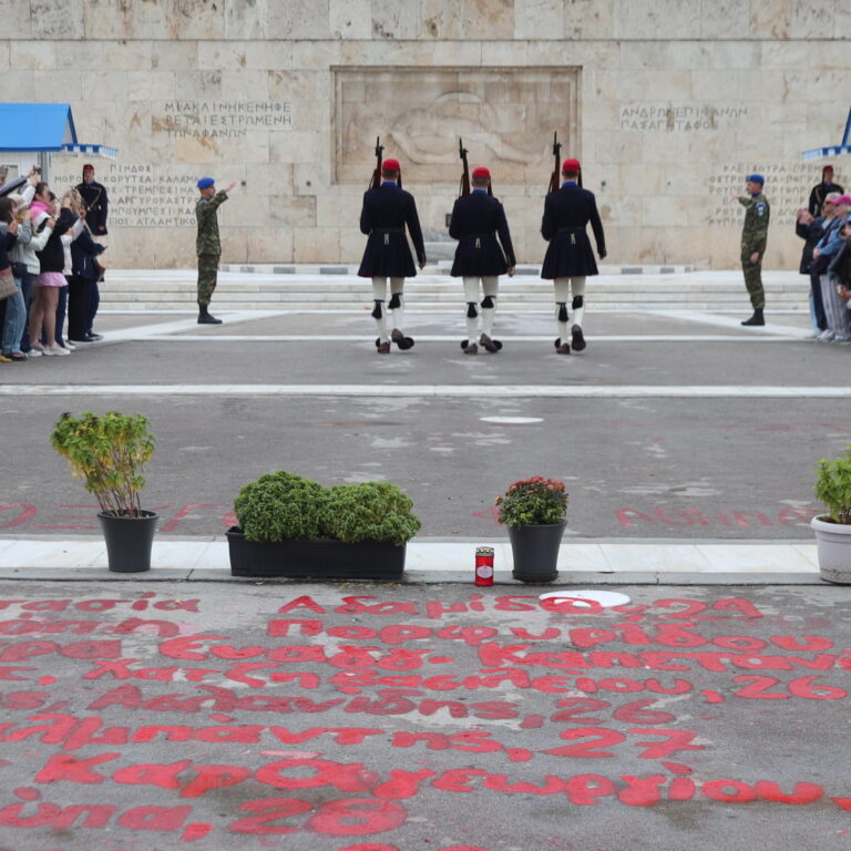 Κατά δήλωση της Προέδρου της Πλεύσης Ελευθερίας, Ζωής Κωνσταντοπούλου, την ερχόμενη Τρίτη, την ώρα που οι επίσημοι θα παρακολουθούν από την εξέδρα στο πεζοδρόμιο επί της Βασιλίσσης Αμαλίας την μαθητική παρέλαση, η ίδια, με συγγενείς των θυμάτων των Τεμπών και πιθανότατα και με αλληλέγγυους, θα βρίσκονται λίγα μέτρα πιο πίσω, στο σημείο μπροστά από τον Άγνωστο Στρατιώτη όπου είναι γραμμένα τα ονόματα των 57 νεκρών της σιδηροδρομικής τραγωδίας.