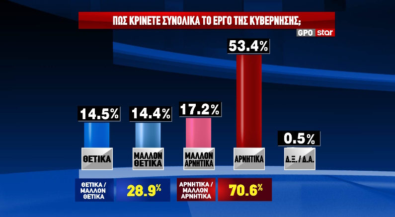 Το 70,6% των ερωτηθέντων κρίνει αρνητικά και μάλλον αρνητικά το έργο της κυβέρνησης.