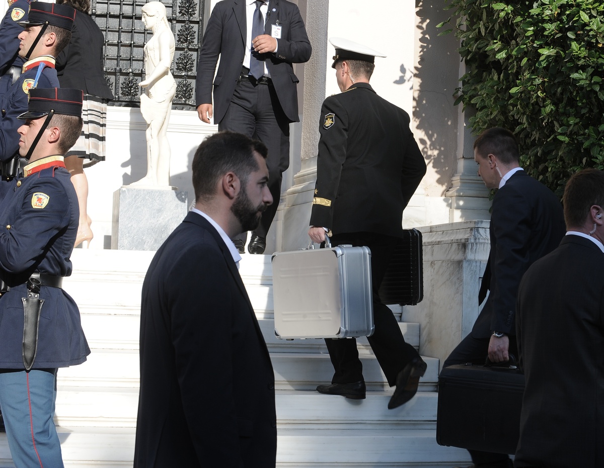 Ωστόσο μαζί του ήταν φυσικά και οι άνδρες ασφαλείας, οι οποίοι στα φωτογραφικά καρέ φαίνονται να μεταφέρουν… δυο – δυο τις βαλίτσες της αποστολής.
