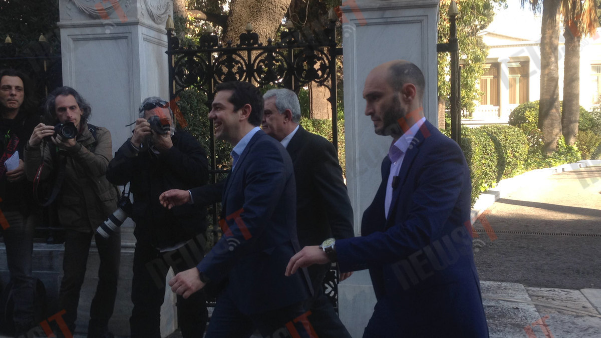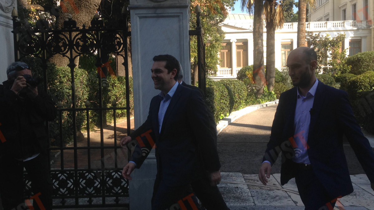 Ο κ. Τσίπρας και ο κ. Σαμαράς μπήκαν στο Προεδρικό Μέγαρο από την κυρίως είσοδο, αντίθετα από τον Προκόπη Παυλόπουλο που μπήκε και βγήκε από την πλαϊνή είσοδο, όπως προτάσσει το πρωτόκολλο, καθώς ακόμη δεν έχει ορκιστεί Πρόεδρος.