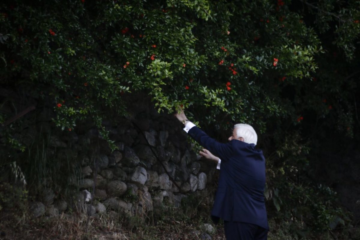 Δεν παρέλειψε να «κλέψει» ένα κορόμηλο κι ας ήταν και ξινό, με τους φωτογράφους να απαθανατίζουν τις ανέμελες στιγμές του Προέδρου της Δημοκρατίας.