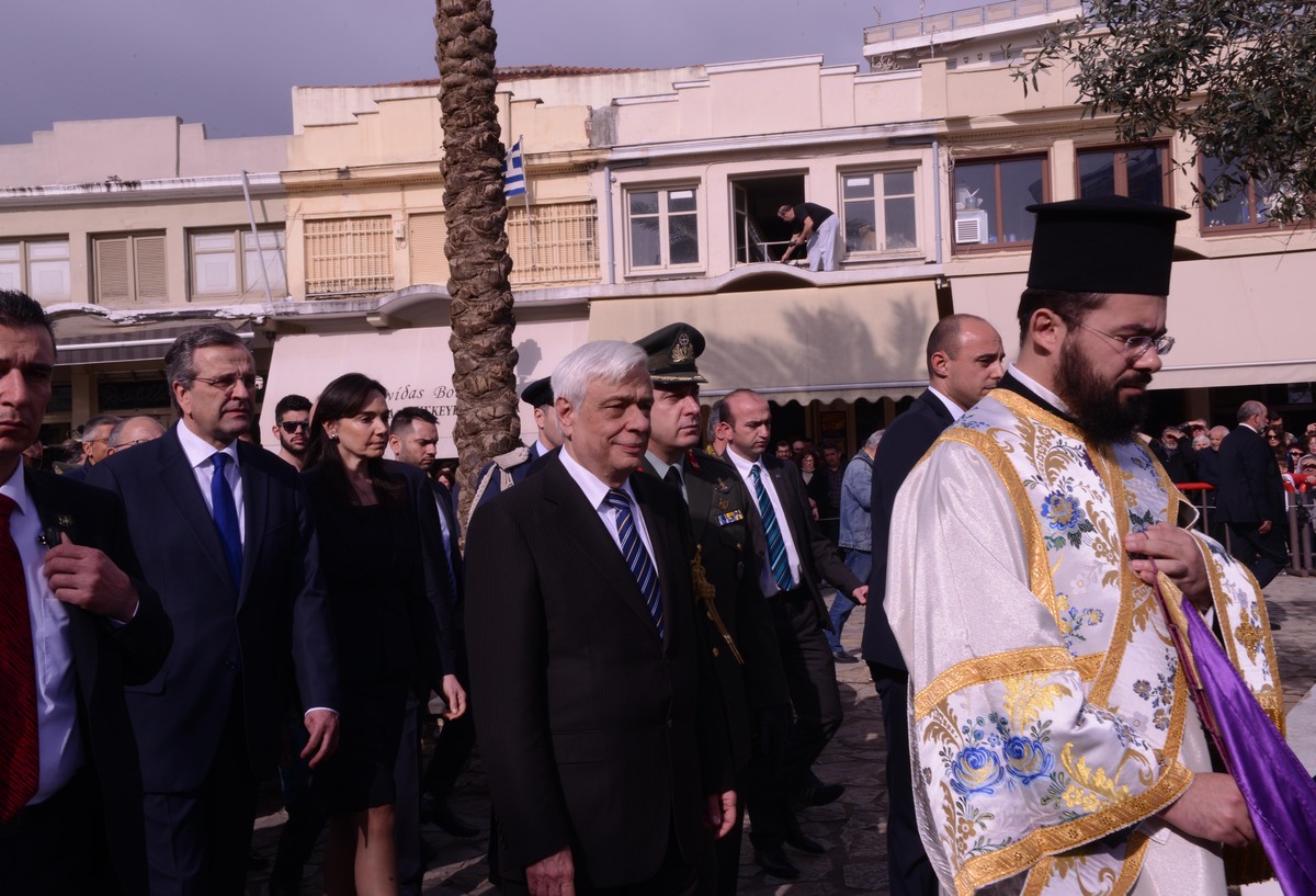 Στον ιστορικό ναό των Αγίων Αποστόλων τελέστηκε η επίσημη δοξολογία, προεξάρχοντος του Μητροπολίτη Μονεμβασίας & Σπάρτης Ευσταθίου, συμπαραστατούμενου από τον μητροπολίτη Μεσσηνίας Χρυσόστομου και του αρχιγραμματέα της Ιεράς Συνόδου της Εκκλησίας της Ελλάδος επίσκοπου Μεθώνης Κλήμη, παρουσία του Προέδρου της Ελληνικής Δημοκρατίας, του αρχηγού της αξιωματικής αντιπολίτευσης και πρώην πρωθυπουργού Αντώνη Σαμαρά, του υπουργού Εθνικής Άμυνας Πάνου Καμένου, του υπουργού αναπληρωτή Πολιτισμού Νίκου Ξυδάκη, του δημάρχου Καλαμάτας Παναγιώτη Νίκα, του περιφερειάρχη Πελοποννήσου Πέτρου Τατούλη, των βουλευτών του νομού, αυτοδιοικητικών παραγόντων και της στρατιωτικής ηγεσίας του νομού και της περιφέρειας.