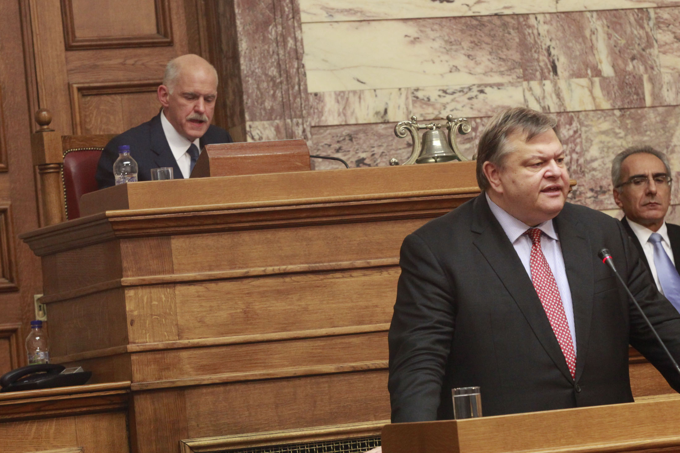 Ωστόσο, ο Ευάγγελος Βενιζέλος απέφυγε επι της ουσίας να τοποθετηθεί και είπε ότι γίνεται μια πολύ σκληρή διαπραγμάτευση επι του θέματος. Παραδέχθηκε ότι το θέμα κυριάρχησε στην συνάντηση που είχε με τον Γ.Παπανδρέου το πρωί, είπε ότι η γραμμή του υπουργείου Οικονομικών είναι καθαρή, παραπέμποντας στο νόμο που ψηφίστξκε για τις κοινές μετοχές, όμως κατέληξε παραπέμποντας για την τελική απόφαση στην αυριανή σύσκεψη των πολιτικών αρχηγών.