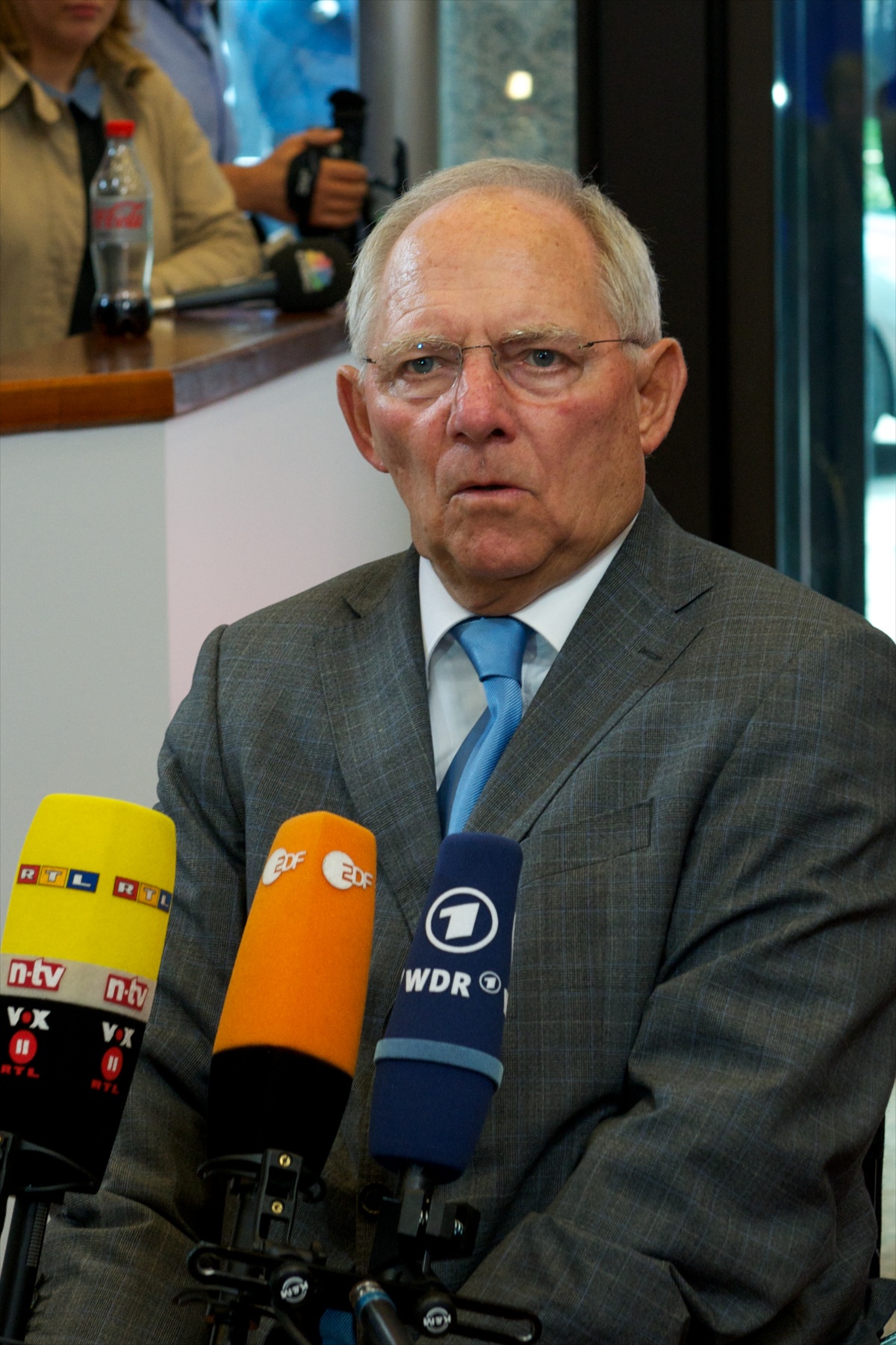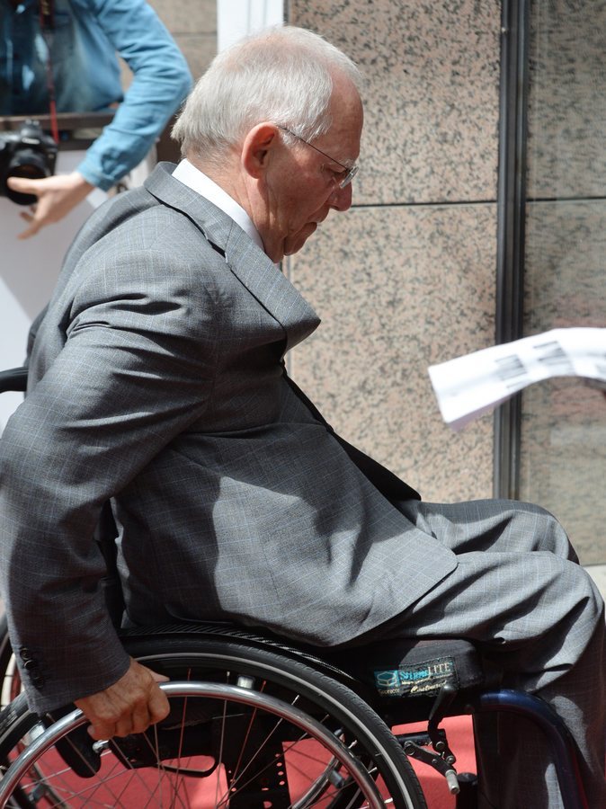 Ο Γερμανός υπουργός Οικονομικών Βόλφανγκ Σόιμπλε επίσης συγκέντρωσε το ενδιαφέρον δημοσιογράφων και φωτογράφων. Άλλωστε αυτός φαίνεται να κρατάει το “κλειδί” των σημερινών εξελίξεων, αφού πριν από το Eurogroup θα δει από κοντά και τον Γιάνη Βαρουφάκη.